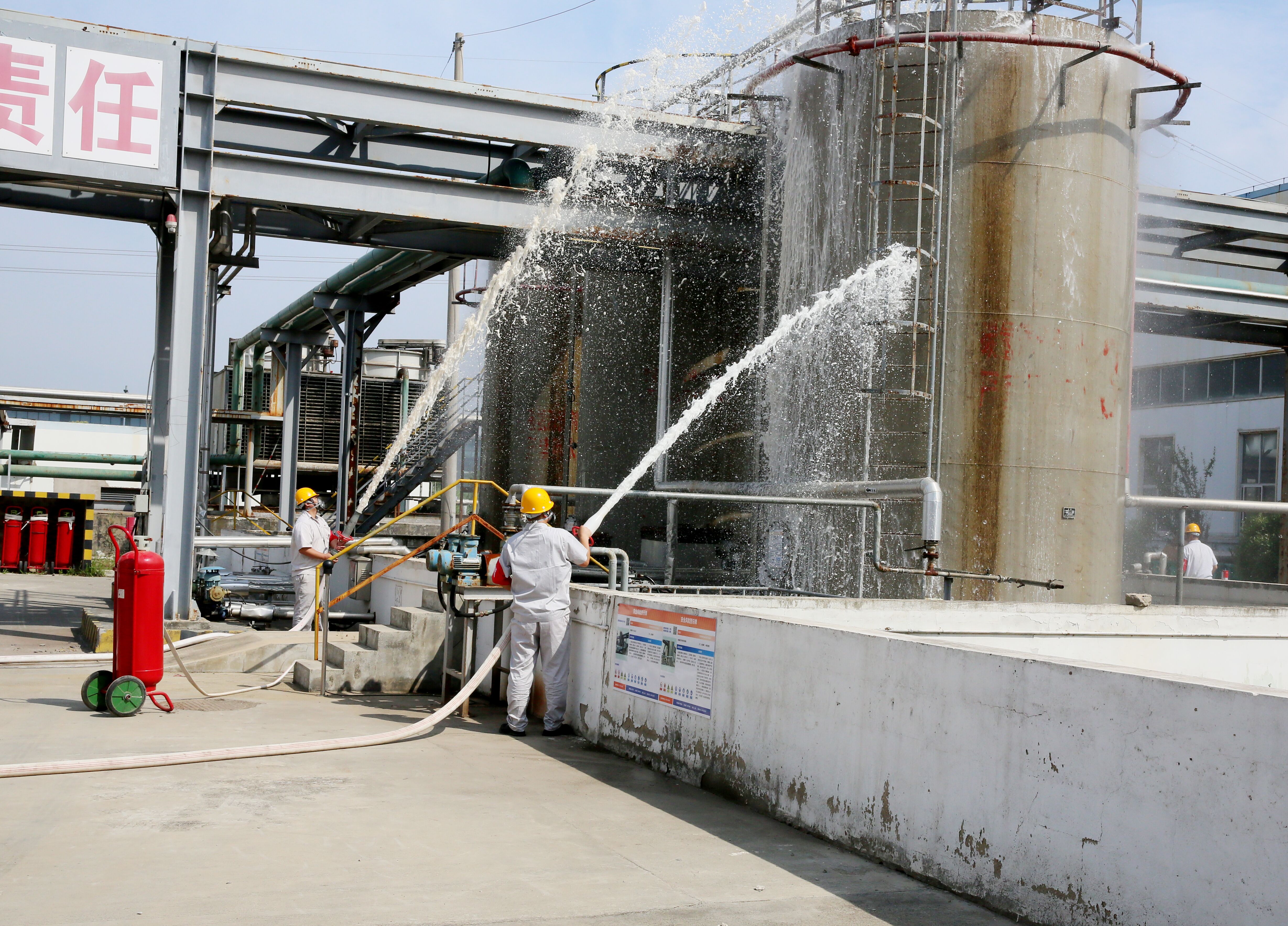 演練模擬神特新材料公司碳?xì)鋬?chǔ)罐區(qū)泄漏引發(fā)火災(zāi)事故,經(jīng)現(xiàn)場(chǎng)處置、啟動(dòng)預(yù)案、應(yīng)急響應(yīng)、專(zhuān)業(yè)救援等程序,最終得到有效控制,達(dá)到預(yù)期效果。