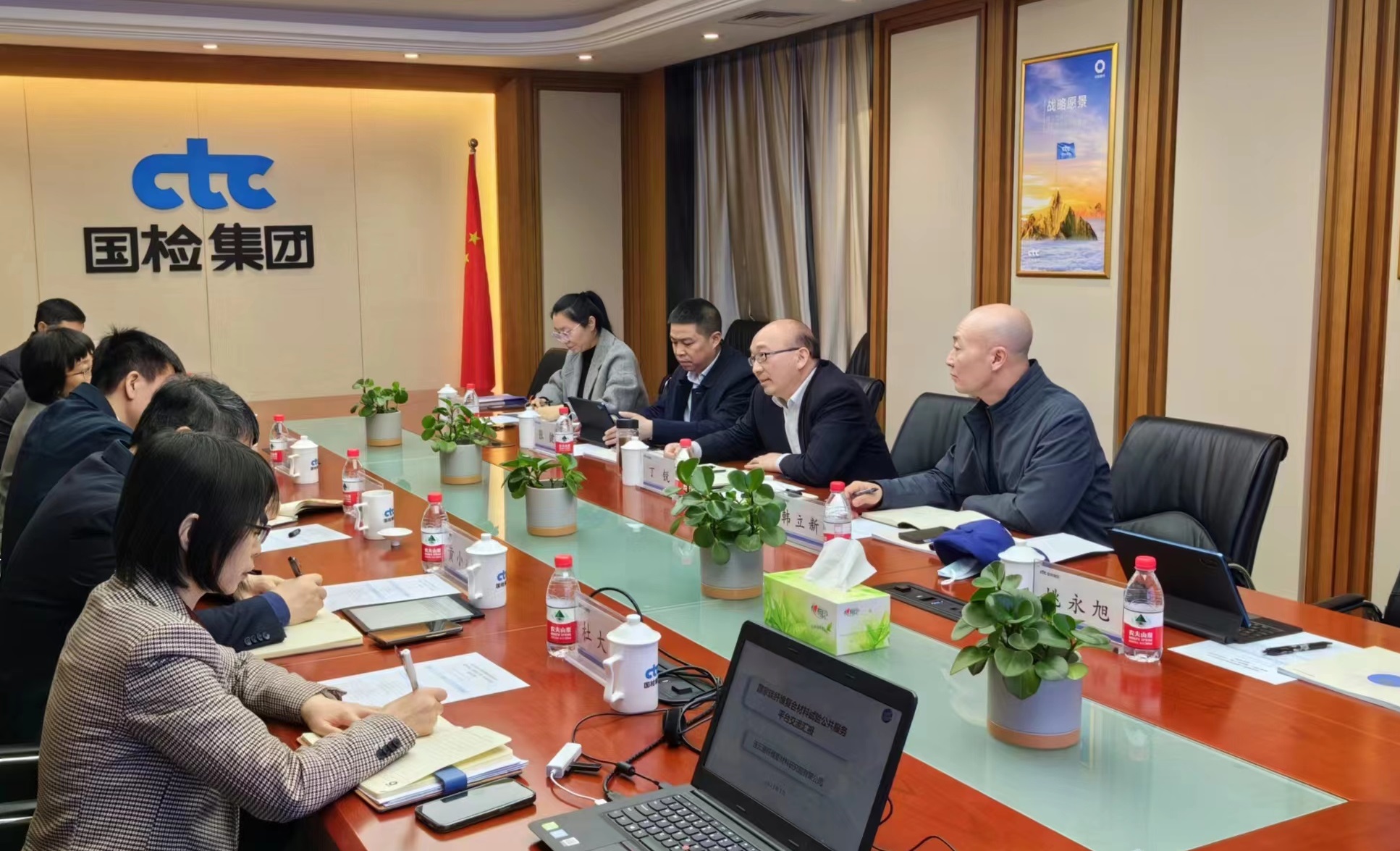 國檢集團(tuán)黨委書記、總經(jīng)理朱連濱,黨委副書記陳璐對(duì)丁銳的到來表示歡迎。雙方分別介紹了國檢集團(tuán)、工投集團(tuán)、碳纖維復(fù)合材料試驗(yàn)平臺(tái)等基本情況,重點(diǎn)圍繞合作基礎(chǔ)、合作方向及合作模式進(jìn)行深入探討交流,在共建檢測(cè)分支機(jī)構(gòu)、共享實(shí)驗(yàn)室、共推研發(fā)項(xiàng)目及共擔(dān)檢測(cè)業(yè)務(wù)等方面達(dá)成共識(shí),下一步將繼續(xù)深化交流,推進(jìn)具體合作事項(xiàng)開展,加快實(shí)現(xiàn)資源融合、共同發(fā)展。