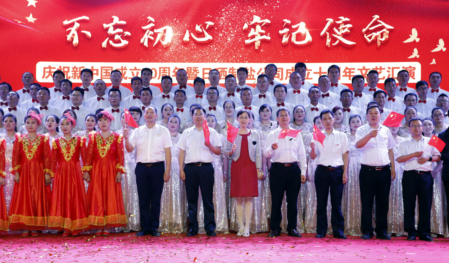日曬制鹽公司舉辦以“不忘初心、牢記使命”為主題的慶祝新中國成立七十周年、日曬制鹽公司成立十周年文藝演出。憶初心,回顧日曬制鹽公司成立十年來的發(fā)展歷程;擔(dān)使命,展示日曬制鹽公司成立十年來發(fā)展成就。表彰先進(jìn)、宣傳典型,展示廣大員工創(chuàng)新創(chuàng)業(yè)的奮斗精神和發(fā)展信心。
