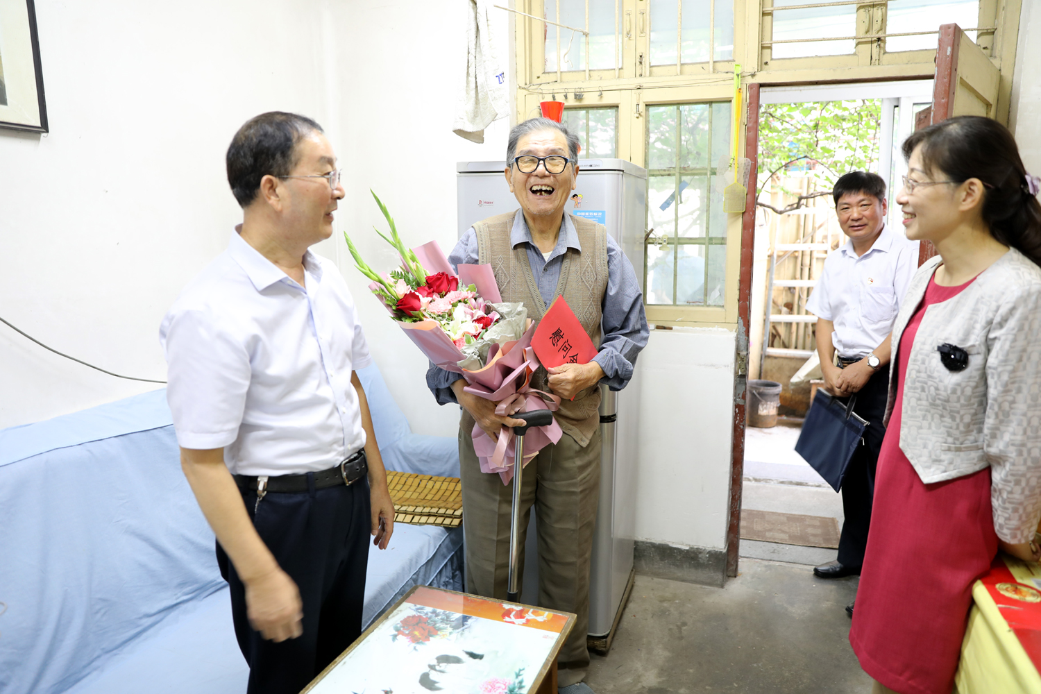 集團(tuán)公司董事長、黨委書記楊龍,總經(jīng)理胡建明、黨委副書記戴鴻鳴、紀(jì)委書記汪群等領(lǐng)導(dǎo)分組走訪慰問部分建國前參加工作的老黨員、老干部,為他們送去慰問金和鮮花,同慶新中國七十周歲華誕。