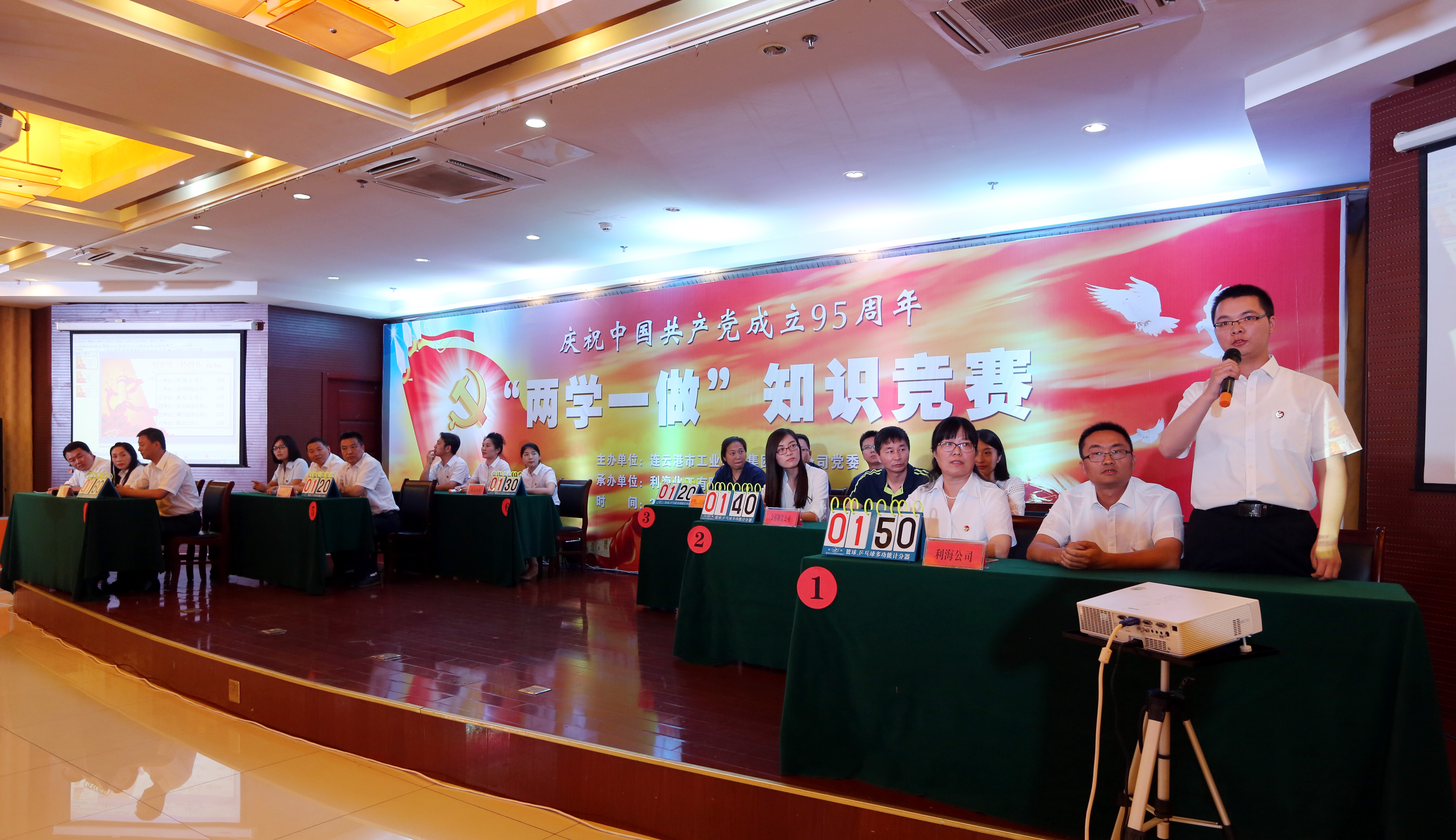 6月24日下午,由集團公司黨委主辦、利海化工公司黨總支承辦的紀(jì)念建黨95周年“兩學(xué)一做”學(xué)習(xí)教育知識競賽在臺南大酒店隆重舉行。集團公司領(lǐng)導(dǎo)楊龍、戴鴻鳴、匡友本、陳如軍,集團公司“兩學(xué)一做”學(xué)習(xí)教育領(lǐng)導(dǎo)小組及辦公室全體成員,總部各部門代表,各權(quán)屬單位黨組織主要負責(zé)人、分管黨建、紀(jì)檢工作副書記、黨群工作部、紀(jì)委負責(zé)人等觀看了知識競賽。