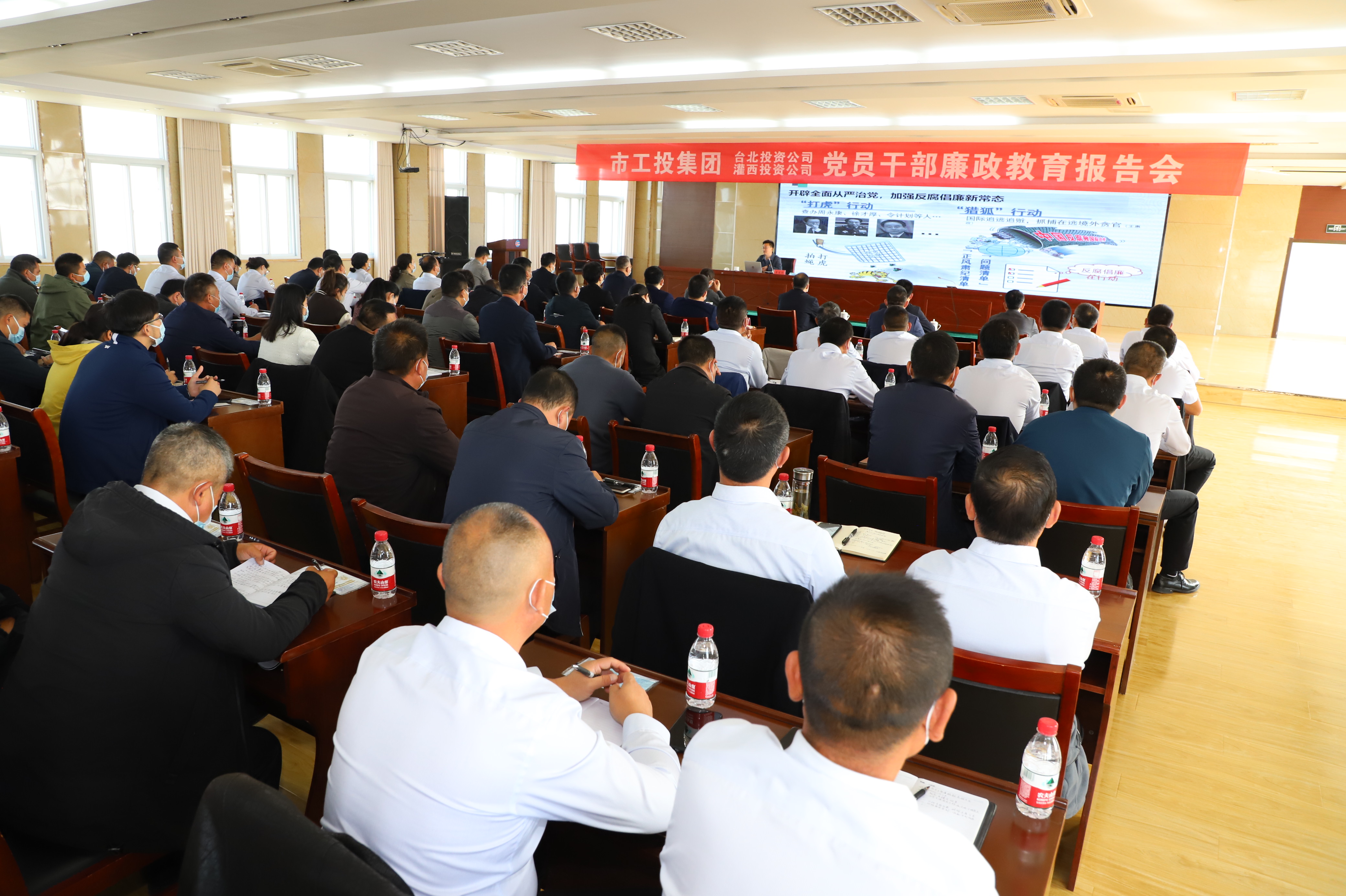 為認(rèn)真貫徹落實(shí)黨的二十大精神,持續(xù)深化全面從嚴(yán)治黨,進(jìn)一步增強(qiáng)黨員干部廉潔自律意識(shí),1028上午,灌西、臺(tái)北投資公司聯(lián)合舉辦廉政教育報(bào)告會(huì)。集團(tuán)紀(jì)委書記汪群、副書記王建松出席報(bào)告會(huì)。