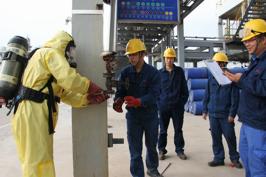 創(chuàng)新競(jìng)賽項(xiàng)目,提升員工技能水平。該公司結(jié)合生產(chǎn)實(shí)際,完善比賽內(nèi)容,創(chuàng)新比賽形式,提高比賽難度,分別在雙氧水、氯化芐、苯甲醛、倉(cāng)儲(chǔ)、檢測(cè)和維保6個(gè)重要操作崗位分組進(jìn)行理論和操作比賽。在往年員工勞動(dòng)技能競(jìng)賽方案的基礎(chǔ)上,增加換濾袋、苯甲醛包裝等競(jìng)賽項(xiàng)目,其中叉車、滾桶和搶險(xiǎn)救援競(jìng)賽項(xiàng)目擴(kuò)大了參賽范圍。此外,應(yīng)急響應(yīng)、應(yīng)急處置和搶險(xiǎn)救援項(xiàng)目不僅讓參賽員工更加熟悉防化服佩戴和呼吸器穿戴方法,還檢驗(yàn)了各級(jí)人員對(duì)突發(fā)事故的應(yīng)急救援實(shí)戰(zhàn)能力和協(xié)調(diào)程度。這些競(jìng)賽項(xiàng)目有效提升了員工的操作技能水平、安全防范意識(shí)、應(yīng)急救援能力和隱患排查能力。