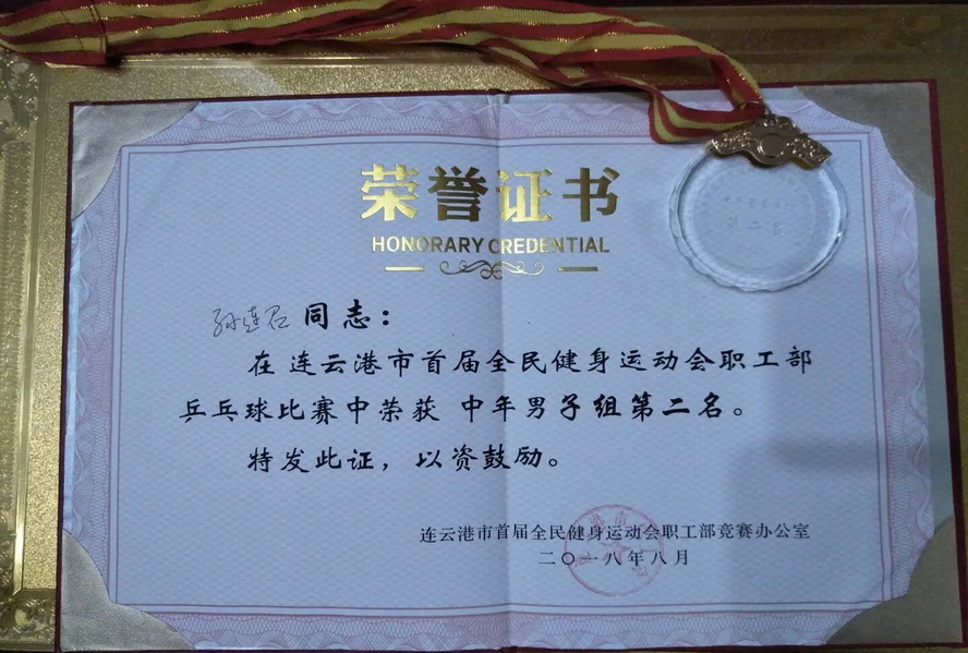 84日至5日,市首屆全民健身運(yùn)動(dòng)會(huì)職工部乒乓球比賽在神鷹碳纖維乒乓球館舉行,我公司選派3名運(yùn)動(dòng)員參賽。經(jīng)過五輪的激烈角逐,孫連召獲中年組亞軍。
