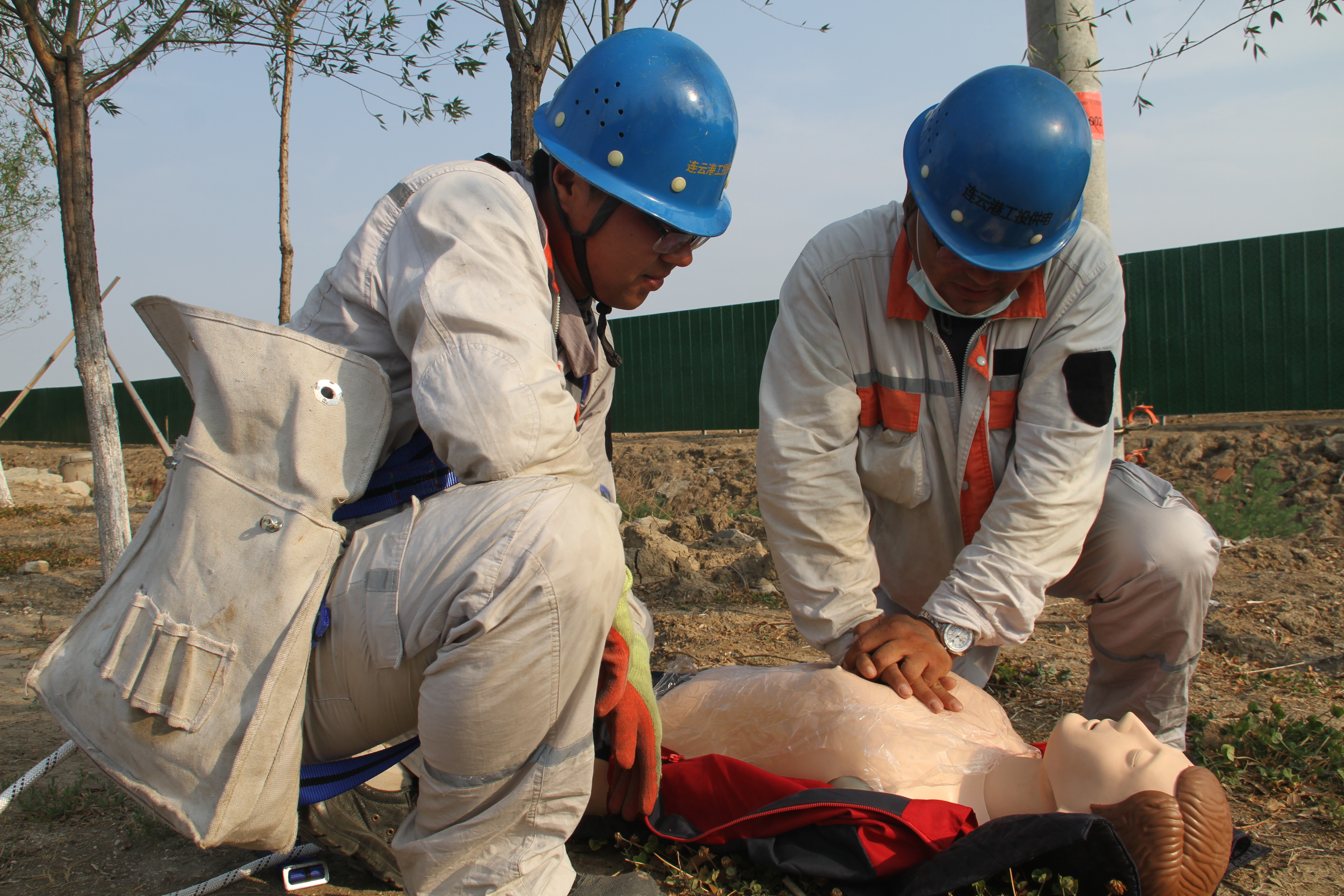 本次活動(dòng),模擬臺(tái)北變電所10KV開(kāi)太線創(chuàng)智街區(qū)支線2#桿AB接地短路,絕緣導(dǎo)線過(guò)負(fù)荷,燃燒滴落物引燃路邊雜草;1名線路搶修人員處置時(shí)發(fā)生高處墜落。承辦單位臺(tái)北供電所現(xiàn)場(chǎng)運(yùn)行值班人員按操作票流程模擬倒閘操作、并宣讀流程,撥打公司值班室電話,搶險(xiǎn)救援組接到電話,向總指揮匯報(bào),總指揮下達(dá)搶修救援指令。隨即臺(tái)北供電所派出2名外線人員,進(jìn)行干粉滅火器滅火模擬操作,搶修救援組立即奔赴現(xiàn)場(chǎng),了解情況展開(kāi)工作,采取初步救援措施;醫(yī)療救護(hù)小組人員配合所內(nèi)救護(hù)人員1名,同步領(lǐng)取物資?,F(xiàn)場(chǎng)模擬醫(yī)療救援,進(jìn)行傷口消毒處理,無(wú)菌紗布綁扎演示,醫(yī)療救護(hù)組處理完畢,宣讀傷情另外嚴(yán)重情況,須120急救,啟動(dòng)應(yīng)急程序,模擬撥打120電話。模擬人員進(jìn)行上桿裝備、勞保裝備穿戴演示,宣讀注意事項(xiàng),并進(jìn)行分支箱接頭、安裝、斷線緊線操作演練等。活動(dòng)環(huán)節(jié)結(jié)束后,安全管理部劉福勇宣告事故應(yīng)急救援結(jié)束。
