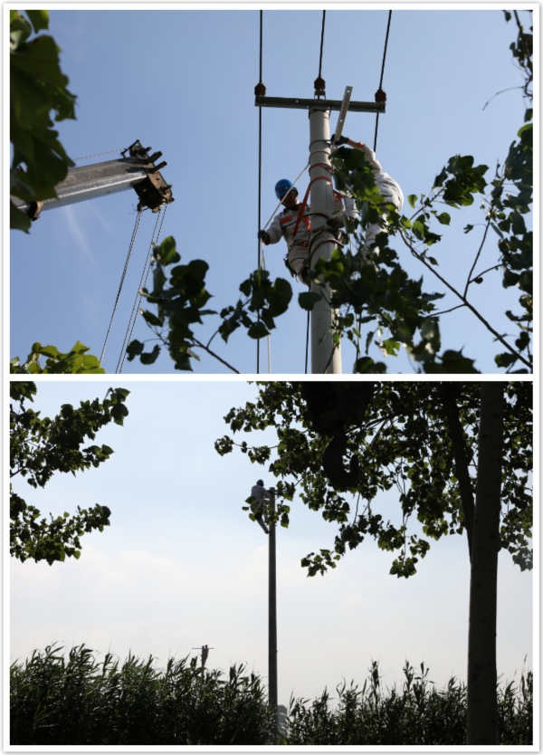 今夏已入伏!但是在金橋路與云馳路315變壓器安裝現場,臺北供電所一線員工們熬著近四十度高溫,奔波在炙熱的馬路上,登上燙手的電桿…他們忘我的工作就是為了讓用戶們用上及時電、安全電、放心電。讓我們?yōu)樗麄兊男燎诟冻鳇c贊?。ㄥX明華)