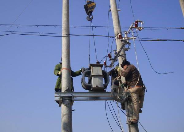 黃化制鈣公司居民區(qū)已有三十多年歷史,目前居住400多戶居民。由于使用年久老化,變壓器容量小、供電半徑大,線路長、線徑細,電壓不穩(wěn),供電效率低。加上居民生活水平提高,用電量增加,供電矛盾日益突出,嚴重影響空調(diào)、冰箱等家用電器正常使用,居民意見很大??紤]到這項工程需投資資金較大,而老居民區(qū)情況復雜、經(jīng)濟上大多比較困難,為快速化解居民用電矛盾,讓他們過上祥和、舒心的春節(jié),臺北供電所自籌資金,領(lǐng)導親自到現(xiàn)場勘察,擬定整改方案。該所人員全部出動,雇用工具車三臺、吊車兩輛,運送一臺100千伏安變壓器、兩個配電箱和10根電桿,自帶導線等材料趕赴施工現(xiàn)場。在居民的支持和配合下,克服了巷口復雜、圍墻歪斜、樹枝凌亂、布局很不規(guī)則等困難,奮戰(zhàn)多日,安裝一臺新變壓器,將原來的一條線進入改為三條線進入,增加供電功率,擴大供電容量。通過進戶測試,均達到用電標準,給居民帶來了冬天的溫暖。