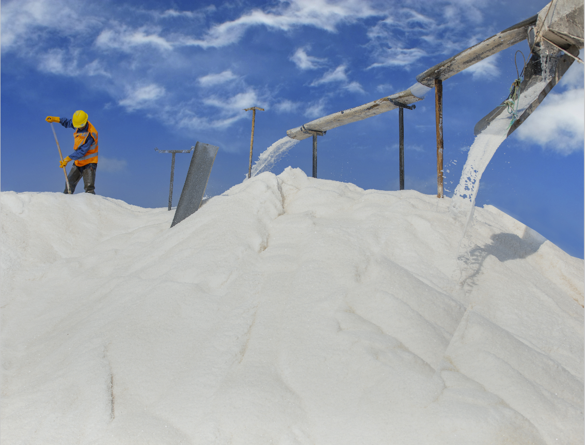 “4號(hào)扒鹽機(jī)組扒鹽即將結(jié)束,10班、11 班的全體人員 8 點(diǎn) 10 分到11班進(jìn)行搬機(jī)……”在日曬制鹽公司的灘頭,不遠(yuǎn)處的“大喇叭”傳達(dá)著生產(chǎn)任務(wù)。連日來,日曬制鹽公司全力推進(jìn)扒鹽生產(chǎn),已扒鹽 16 萬噸,長鹽 21 萬噸,廣大員工激情奮戰(zhàn)在鹽業(yè)生產(chǎn)第一線。5月1日一大早,天剛蒙蒙亮,鹽池里便傳來“轟隆隆”的響聲,工人操作機(jī)械活碴。晴好的天時(shí)為忙碌的工人增添了些許奮斗的印跡,臉上的汗珠透過太陽反照出耀眼的光芒。