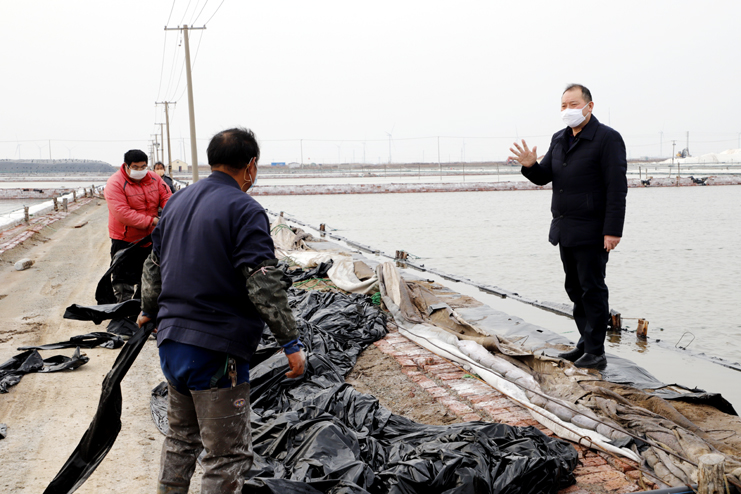 李國文首先來到日曬制鹽公司生產(chǎn)灘頭,現(xiàn)場察看復(fù)工復(fù)產(chǎn)情況。徒步灘頭,有的在補(bǔ)塑布、有的在修整廩基、有的在更換塑布,每個(gè)班組都在搶抓時(shí)間準(zhǔn)備春扒工作。隨后李國文先后前往西旺養(yǎng)殖池塘、明威田頭、宵洋物流碼頭,每到一處都詳細(xì)詢問職工口罩、消毒酒精等防護(hù)物資夠不夠用,有沒有外地回來的員工,并叮囑員工少接觸外地回來人員,錯(cuò)開上下班時(shí)間,外出要帶口罩,保護(hù)好自己才能更好的為企業(yè)創(chuàng)造效益。