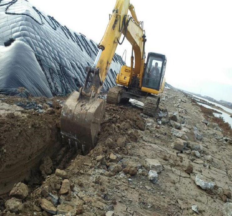 (圖為施工現(xiàn)場挖掘機整理路基) 新河制鹽分公司二期運鹽路損壞嚴(yán)重長期無法將原鹽向外駁運,經(jīng)過投資公司向縣政府爭取,縣政府同意維修二期3.3公里運鹽路,道路修建已于近日開工,希望這條路早日通車,來減少原鹽庫存,為來年原鹽生產(chǎn)提供保障(新河制鹽分公司)