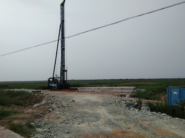 坐落在西旺水產(chǎn)公司農(nóng)田區(qū)域內(nèi)的其中的8個(gè)風(fēng)力發(fā)電機(jī)建設(shè)項(xiàng)目,繼續(xù)協(xié)調(diào)、征地、便道鋪建完工后,目前進(jìn)入樁基施工階段。圖為樁基施工現(xiàn)場(西旺宣)
