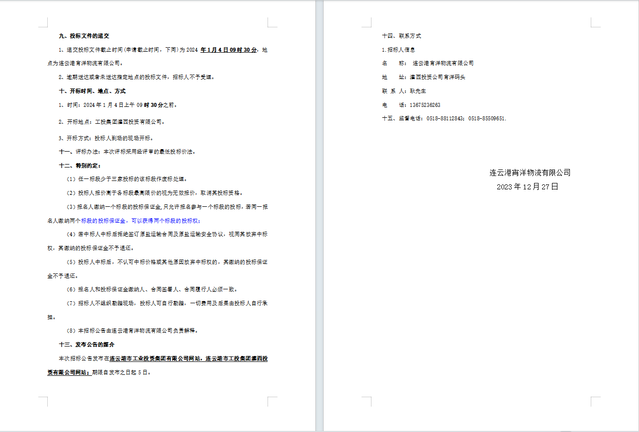 連云港宵洋物流有限公司原鹽車輛運輸服務(wù)業(yè)務(wù)招標公告(二次)