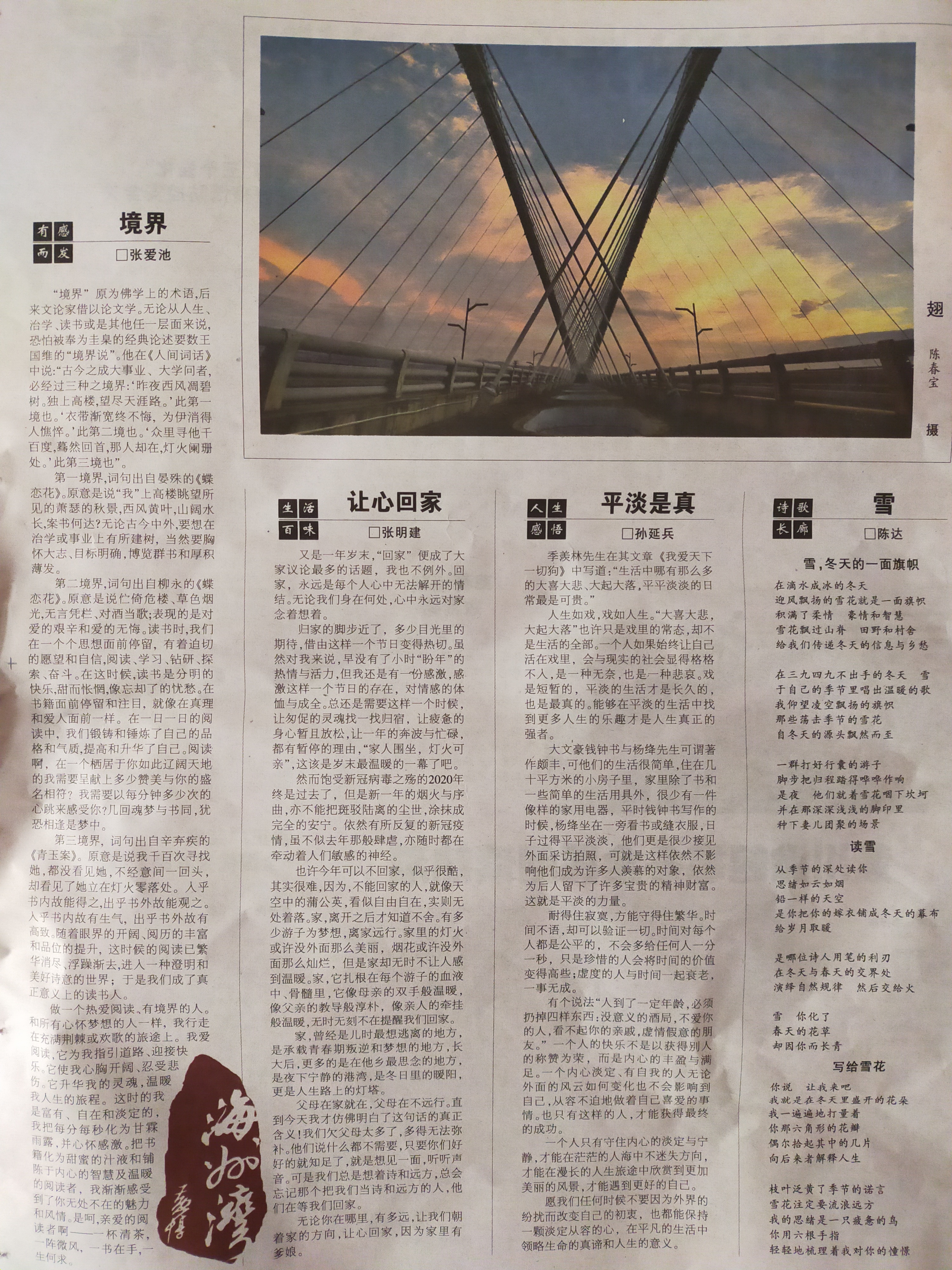歸家的腳步近了,多少目光里的期待,借由這樣一個(gè)節(jié)日,變得熱切。雖然對(duì)我來說,早沒有了小時(shí)“盼年”的熱情與活力,但我還是有一份感激,感激這樣一個(gè)節(jié)日的存在,對(duì)情感的體恤與成全。總還是需要這樣一個(gè)時(shí)候,讓匆促的靈魂找一找歸宿,讓疲憊的身心暫且放松,讓一年的奔波與忙碌,都有暫停的理由,“家人圍坐,燈火可親”,這該是歲末最暖煦的一幕了吧。