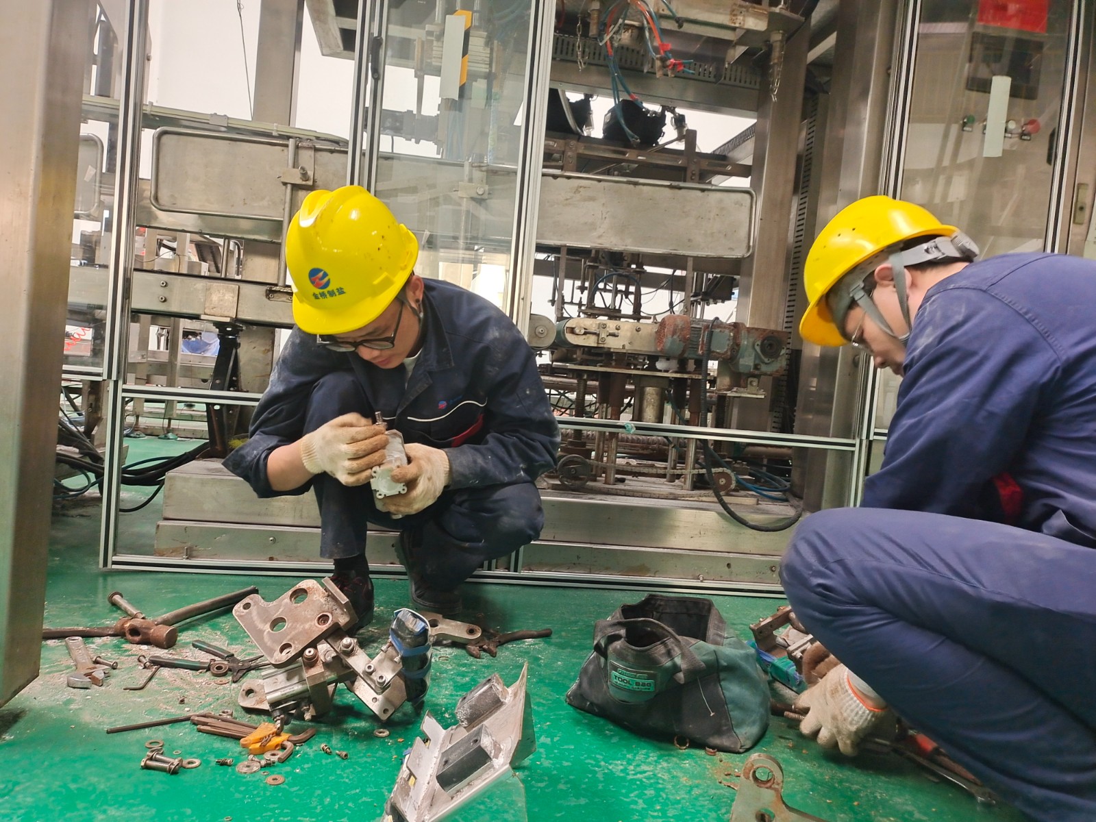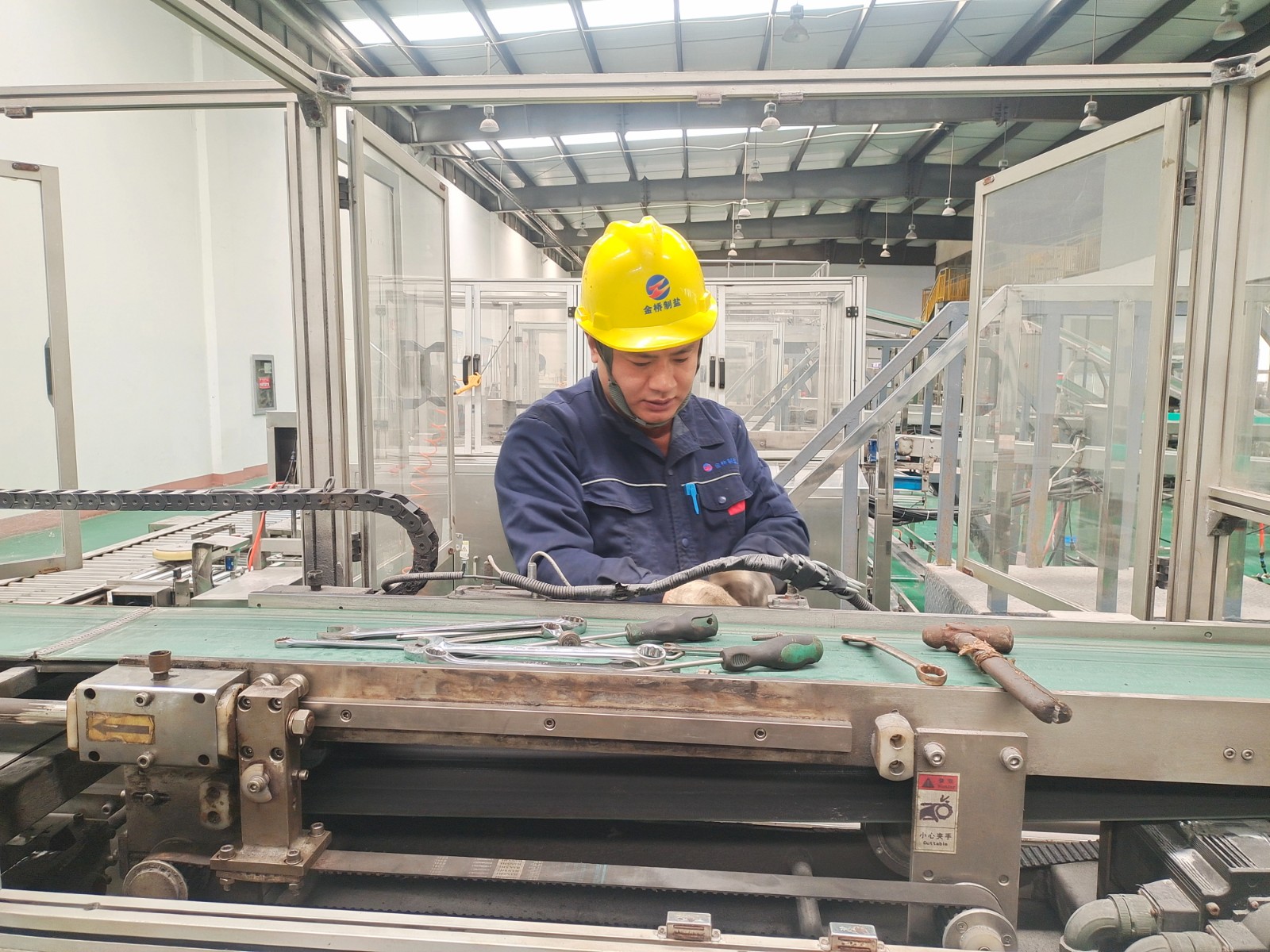 包裝鹽車間停產(chǎn)期間,為避免車間設(shè)備在后期生產(chǎn)時(shí)出現(xiàn)問題,王以知帶隊(duì)對(duì)設(shè)備進(jìn)行維修保養(yǎng)。經(jīng)過分工,陳韓和王睿對(duì)裝袋機(jī)夾袋機(jī)構(gòu)更換磨損軸承;趙新超對(duì)裝箱機(jī)伸縮頭導(dǎo)軌進(jìn)行調(diào)整維護(hù);王東海和秦榆旺對(duì)爬坡皮帶機(jī)檔條脫落的進(jìn)行加固;最后,對(duì)電纜溝蓋板除銹上漆,使車間環(huán)境更加美觀整潔。(李竹垚)