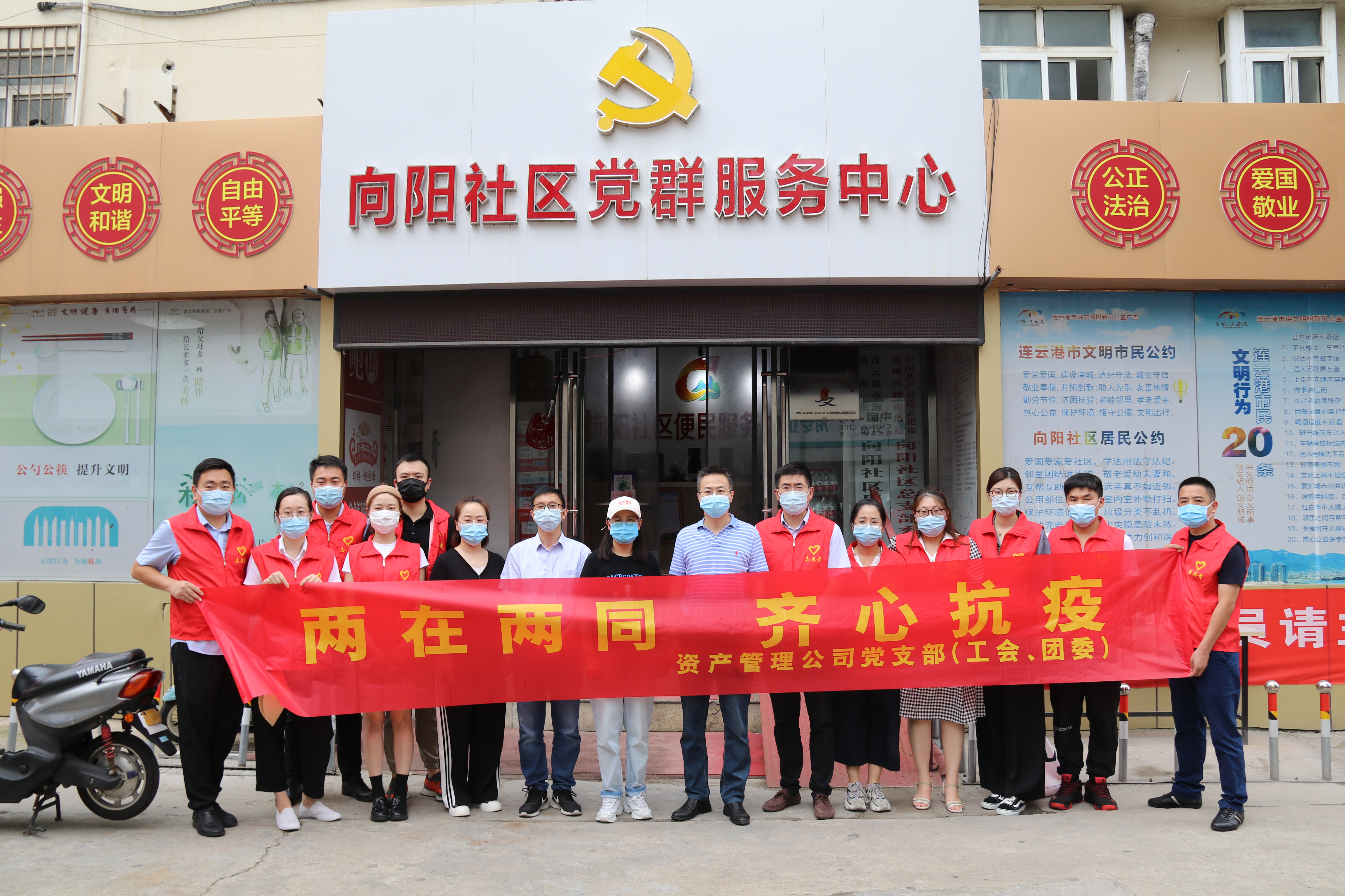 資產(chǎn)管理公司黨支部堅(jiān)決落實(shí)市委、集團(tuán)黨委“兩在兩同”建新功行動(dòng)要求,聞令而動(dòng)、守土擔(dān)責(zé),用實(shí)際行動(dòng)踐行偉大建黨精神。 齊心協(xié)力,黨建引領(lǐng)抗疫情。 該支部動(dòng)員20名黨員、青年志愿下沉到抗疫一線,配合海州區(qū)向陽社區(qū)開展聯(lián)動(dòng)防控,排查走訪,蹲點(diǎn)值守,引導(dǎo)社區(qū)居民及時(shí)接種疫苗,構(gòu)筑起疫情防控堅(jiān)實(shí)屏障。8月25日,該支部聯(lián)合海州區(qū)向陽社區(qū)開展“兩在兩同齊心抗疫”主題黨日活動(dòng)。通過慰問社區(qū)防疫工作者,為其捐贈(zèng)物資;檢查行程碼、測(cè)量體溫,登記疫苗接種情況、通知全民核酸檢測(cè),宣傳防疫政策等工作,有效緩解社區(qū)防疫工作壓力,切實(shí)踐行“三個(gè)服務(wù)”。