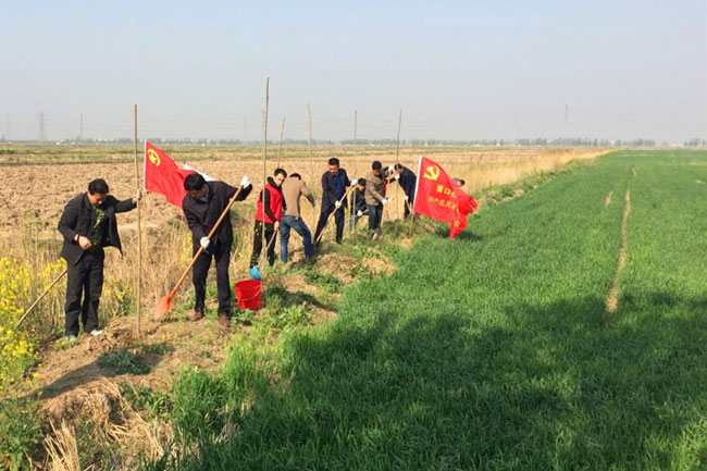 植樹活動(dòng)現(xiàn)場,大家紛紛擼起衣袖,揮锨鏟土,填入樹苗,正苗澆水,培實(shí)新土,干的十分起勁,一片熱火朝天的勞動(dòng)景象。經(jīng)過一上午的緊張忙碌,種好的800余株白蠟樹苗一株株井然有序,迎風(fēng)挺立,在明媚的春光中展現(xiàn)出勃勃生機(jī),為植樹現(xiàn)場增添一片新綠。