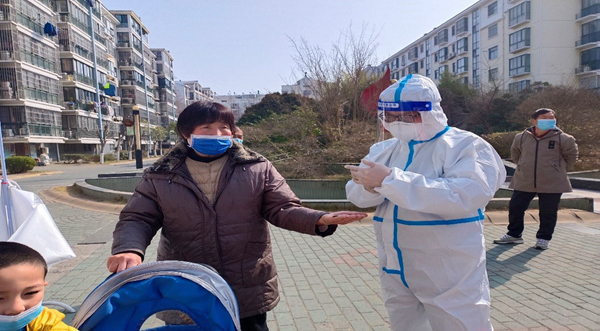抗疫是場接力賽,眾志成城才能取得勝利。3月18日,參加集團抗疫志愿服務的伏達、徐宏亮接過范益楊、李夢達的“接力棒”,一往如前,奮斗在抗疫一線。清晨,冒著些微冰雹加小雨,通過交通管制重重關(guān)卡,兩人準時到達結(jié)對小區(qū)開展志愿服務,一會兒在卡口執(zhí)勤,一會兒維護核酸檢測秩序,一會兒巡邏檢查路邊商戶是否暫停營業(yè)……愣是在寒風中,忙出一身汗。