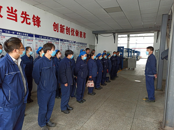 為加強規(guī)范化管理,近日,公司制定生產(chǎn)班組班會開會流程,規(guī)定班組員工按指定區(qū)域點位有序站好、著裝整齊、動作劃一。通過該項措施,有效改善生產(chǎn)班組員工開會時“松、散、懶”形象,提起振奮,提勁實干。