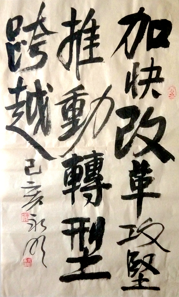 書法作品《加快改革攻堅(jiān),推動(dòng)轉(zhuǎn)型跨越》