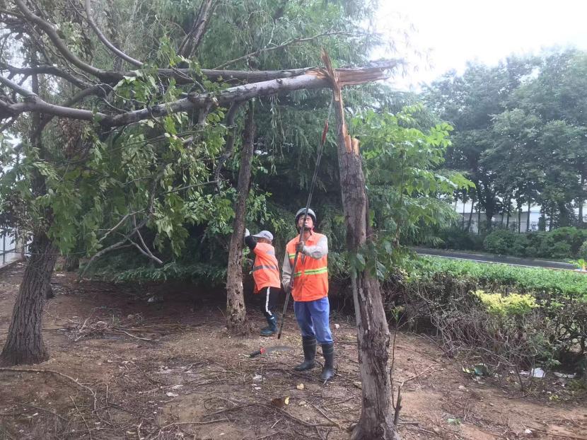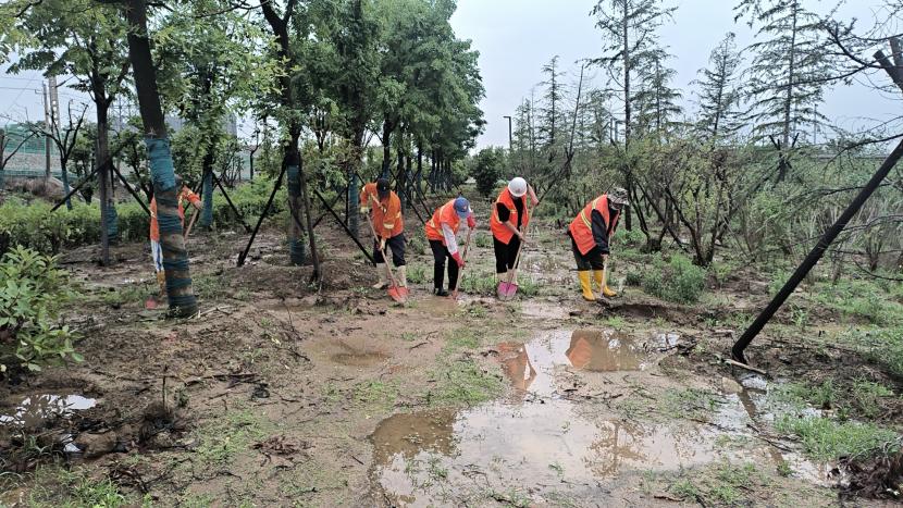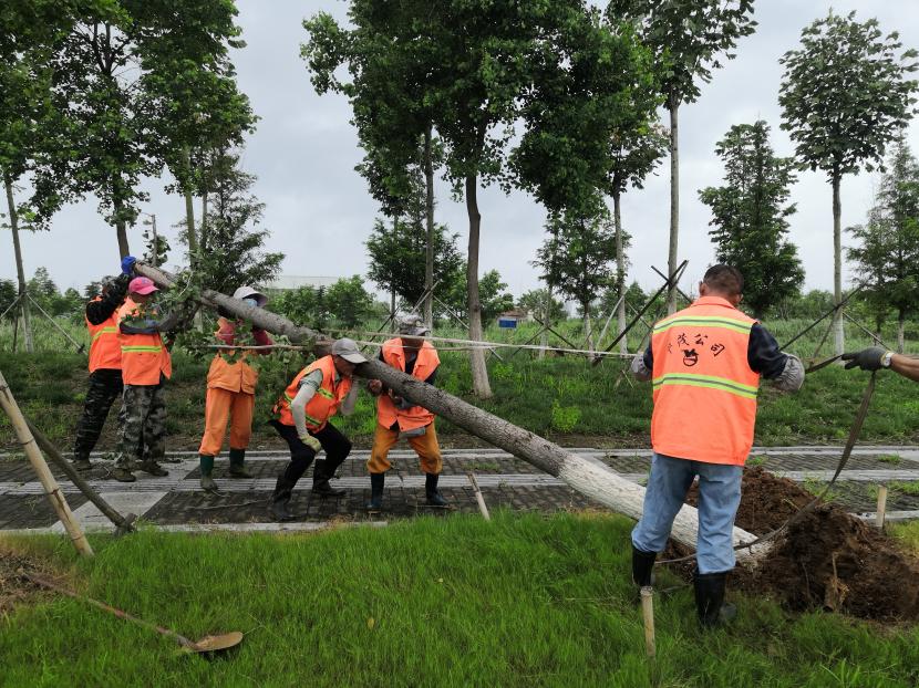 綠化分公司全力以赴筑牢汛期“安全網(wǎng)”,迅速開展應(yīng)急處理,加大現(xiàn)場巡查力度,及時進(jìn)行排澇清淤、樹木扶正、強(qiáng)基加固,全力排除險情,保障樹木、苗木安度汛期。截至20日17時,出動巡查人員 56人次,巡查車、高架車、貨車等車輛 24車次,扶正移栽倒伏樹木 70 株,修剪斷枝 12株,加固支撐168株。對云池路、玉竹路、匯晶路等22處路段排澇清淤,及時消除轄區(qū)內(nèi)安全隱患,保障了市民出行安全,鞏固了城市綠化成果。