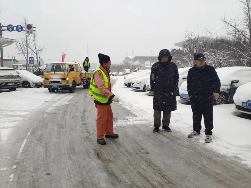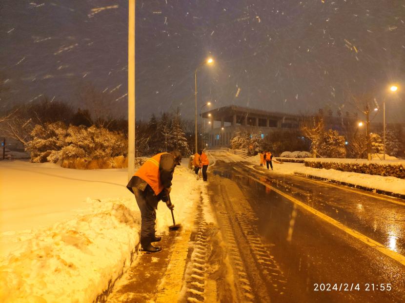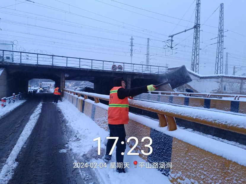 上午10時(shí)許,暴雪如約而至。裝有融雪劑的車輛全部整裝待發(fā),聞令而動(dòng),采取“人工+機(jī)械”不間斷作業(yè)模式,對(duì)轄區(qū)主次干道、橋涵、火車站東站、創(chuàng)智大廈等帶坡路段及時(shí)拋撒融雪劑,采取“滾刷+鏟車”組合方式,反復(fù)排掃路面積雪,確保主次干道、帶坡路段通暢無冰。