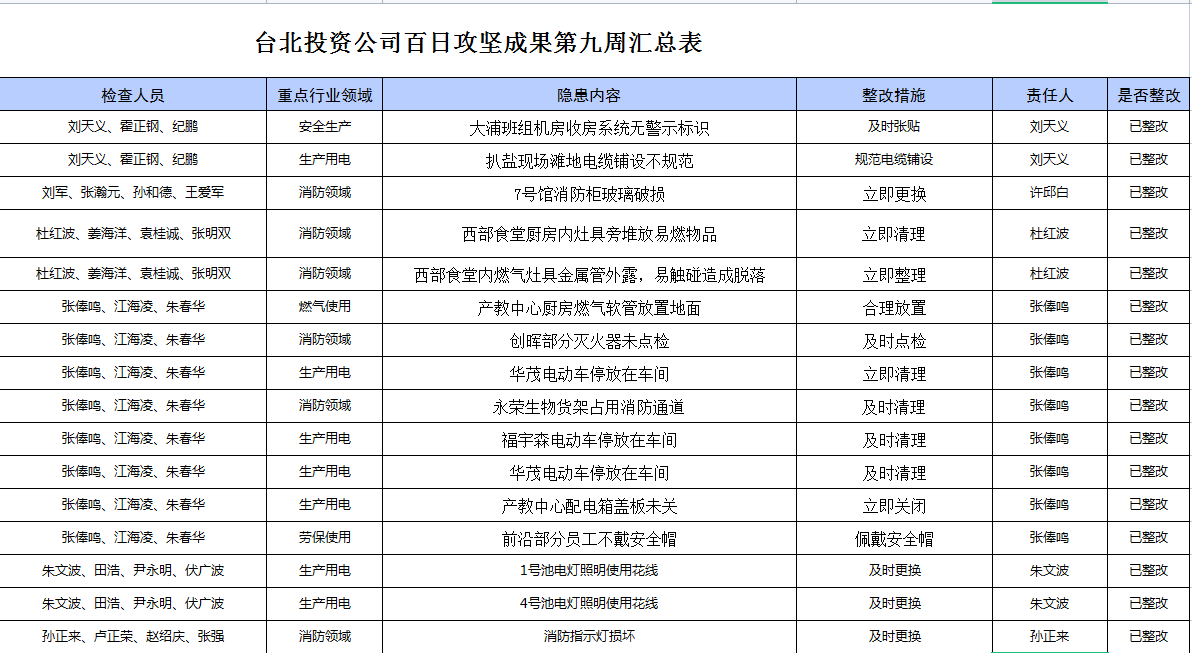 臺北投資公司百日攻堅(jiān)成果第九周匯總表