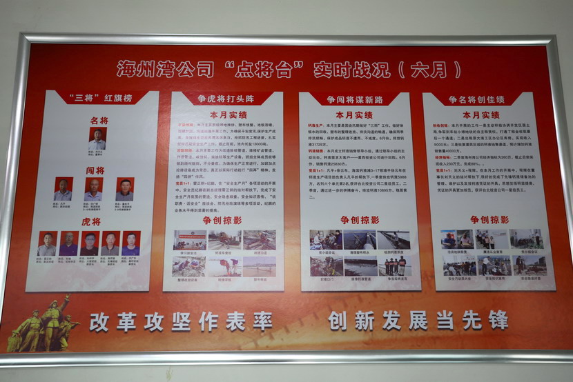 與會(huì)人員邊看邊聽講解海州灣黨支部規(guī)范化展板和本月書記項(xiàng)目的落實(shí)情況,以及在海州灣黨建活動(dòng)室觀摩學(xué)習(xí)了上半年黨建基礎(chǔ)臺(tái)賬和活動(dòng)影像。各黨支部就基層黨組織規(guī)范化及書記項(xiàng)目“點(diǎn)將臺(tái)”的落實(shí)情況作了匯報(bào)交流。黨委副書記楊善革針對(duì)各支部的黨建工作情況作了詳細(xì)的點(diǎn)評(píng),指出各支部黨建工作中存在的不足,并要求各支部立即整改。