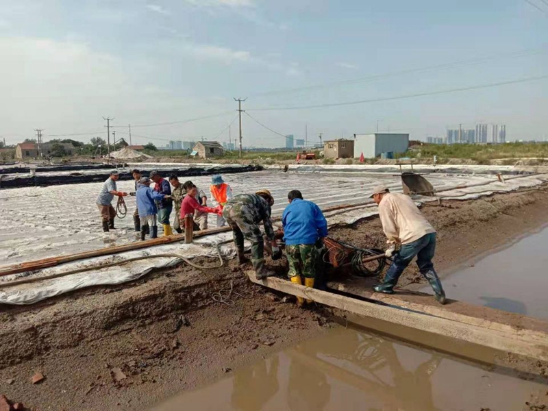 海濱大八組,老鹽工們移動大架,搬運管道,調(diào)試機器,開始一年一度的秋季生產(chǎn)。