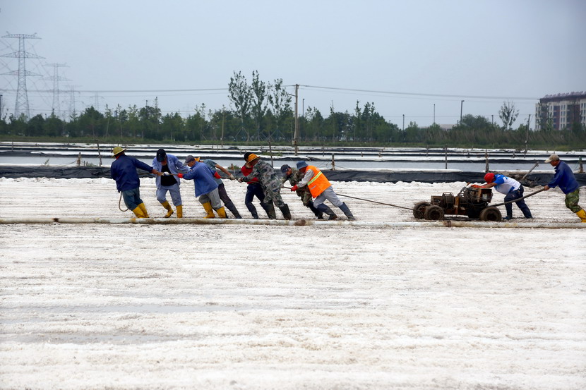 今年以來(lái),針對(duì)政府征地、堿廠關(guān)停的現(xiàn)實(shí),投資公司積極推進(jìn)生產(chǎn)方式變革,打破一年兩季固有收鹽模式,實(shí)現(xiàn)原鹽隨用隨收。在海州灣先鋒東灘扒鹽一線,王德志仔細(xì)觀看了作業(yè)情況,現(xiàn)場(chǎng)收鹽職工正在進(jìn)行挪機(jī)工作。