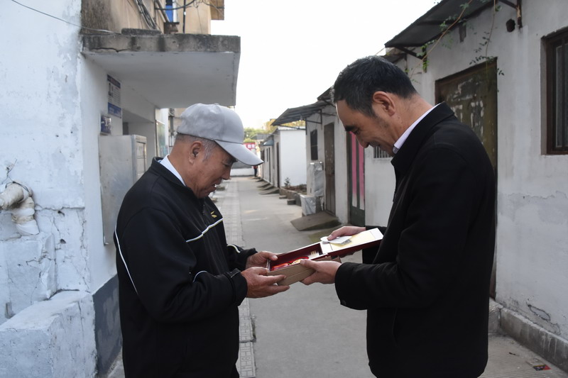 解韻波同志今年83歲,1956年1月參軍,那年19歲,同年6月經(jīng)過短期高強(qiáng)度培訓(xùn),作為無(wú)線電通訊兵出國(guó)抗美援朝。1959年西藏達(dá)賴集團(tuán)發(fā)動(dòng)叛亂,剛回國(guó)不久的解韻波作為無(wú)線電技術(shù)兵種隨即跟隨大部隊(duì)入藏平叛。至今他仍保留著抗美援朝軍功章,入藏平叛軍功章、紀(jì)念章等。1962年退伍分配至臺(tái)北鹽場(chǎng)工作,1997年退休。今天慰問的時(shí)候,在鄰居們的簇?fù)砗推G羨之中,還沒進(jìn)家門,鄰居們就迫不及待地要求打開“紀(jì)念章”一睹風(fēng)采。紀(jì)念獎(jiǎng)?wù)聮煸诶蠎?zhàn)士胸前,一眾鄰里夸贊不斷:這份榮譽(yù)沉甸甸的。這份榮譽(yù)是拿命換來的。這是不得了的榮譽(yù)啊。這樣的老兵是我們的寶貝哦,我們要尊敬啊。……就在小區(qū)活動(dòng)廣場(chǎng)上,老戰(zhàn)士與大家暢談起保家衛(wèi)國(guó)光榮的戰(zhàn)斗經(jīng)歷,烽煙往事歷歷在目。退伍后,不褪軍人本色,幾十年如一日立足家鄉(xiāng)建設(shè),為臺(tái)北鹽場(chǎng)奉獻(xiàn)青春,為國(guó)家建設(shè)貢獻(xiàn)力量。大家對(duì)解韻波老戰(zhàn)士的革命戰(zhàn)斗和建設(shè)祖國(guó)的歷程表示由衷贊嘆和敬佩。