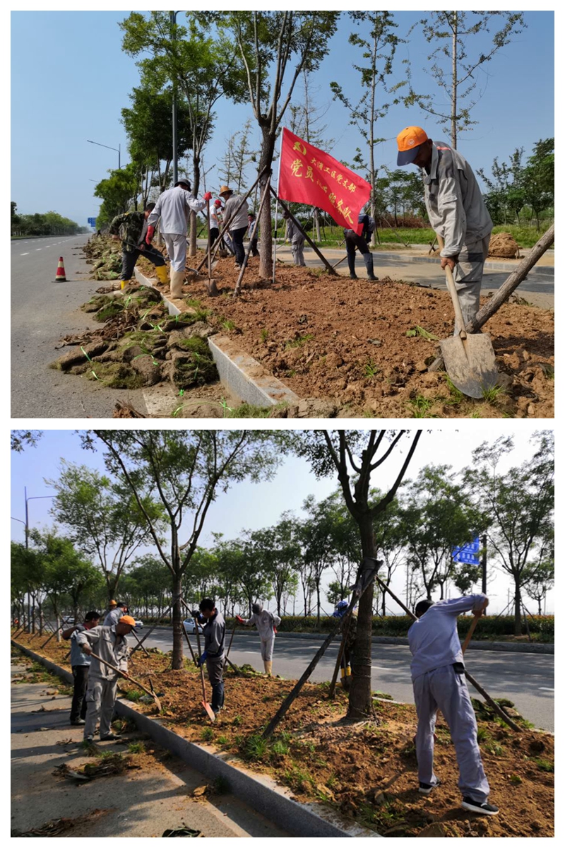 末伏天,熱浪席卷全身,太陽瘋了似的肆虐著萬物,即使是狂風(fēng)暴雨的降臨也只能緩解一時的沉悶。8月18日上午,大浦支部黨員突擊隊臨危受命,奔赴匯晶北路綠化帶助力翔立分公司突擊鋪設(shè)草皮工程任務(wù),攜手共建美麗連云港。