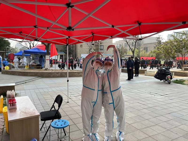14:00??核酸檢測進(jìn)入尾聲,忙里偷閑和大家聊會兒天,身邊的“大白”來自各行各業(yè)。疫情防控戰(zhàn)打響,在這危難時刻,我們一同挺身而出,臨危受命,“逆行”沖往防疫第一線。大家聽從指揮、主動擔(dān)當(dāng)?shù)木唧w行動,充分體現(xiàn)了年輕黨員能打硬仗、敢打硬仗的優(yōu)良品格!