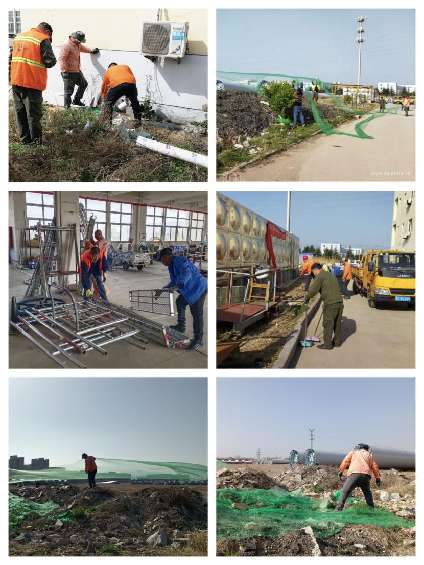 4月1日上午,該分公司各班組職工對室外露天的沙堆和石子用防塵網(wǎng)進(jìn)行認(rèn)真的覆蓋,有效的防止了揚沙揚塵對環(huán)境的污染影響。在車間里,職工們將散亂在各處的角手架等物品整齊的擺放在了指定區(qū)域,然后用水龍頭對地面進(jìn)行認(rèn)真的清洗,保證車間內(nèi)一塵不染的視覺效果,本次活動的開展,明顯提升了車間和周邊環(huán)境的衛(wèi)生條件,增強(qiáng)了公司的環(huán)保形象,為大干二季度營造了良好的工作環(huán)境。