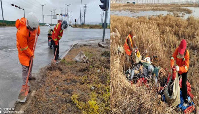 ? ? ? ?突擊處理“一馬當(dāng)先”。該分公司園區(qū)兩個(gè)班組雙休期間,及時(shí)服從徐圩城建活動(dòng)保障路線整改要求,強(qiáng)化蘇海路路面兩側(cè)施工圍檔,石化三路中風(fēng)帶護(hù)欄清洗力度班組人員兩人一對,三人一組,無懼徐圩海風(fēng)吹透身體,揮動(dòng)手中拖把清洗圍檔,護(hù)欄長達(dá)1000多米長,清除車輛拋灑積土20余處,用辛勤勞作汗水踐行勞動(dòng)本色。